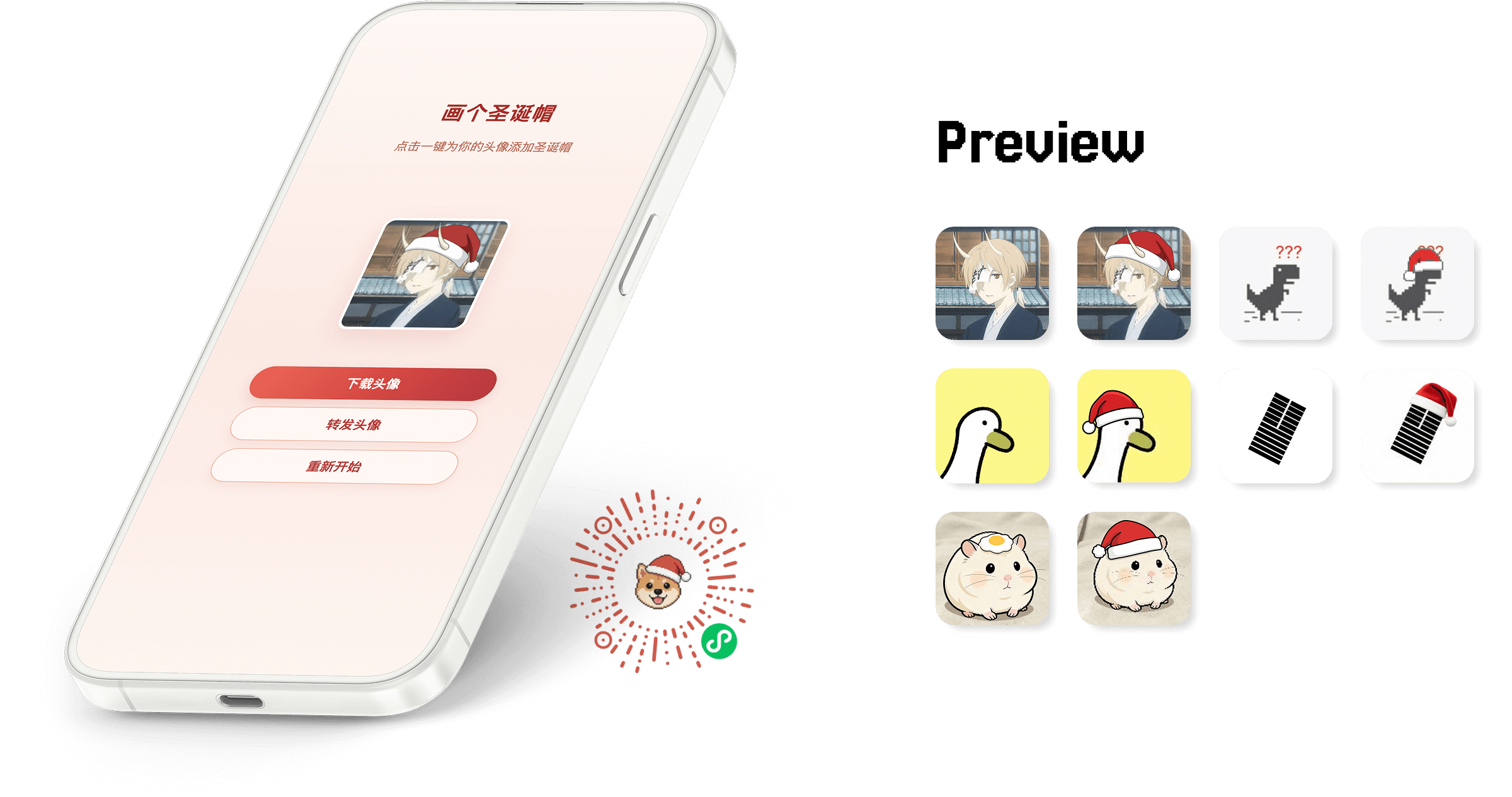 “Draw a Santa Hat” is a lightweight, playful WeChat Mini Program that puts a Santa hat on your avatar in one tap. No login, no setup—open and enjoy the holiday vibe instantly.